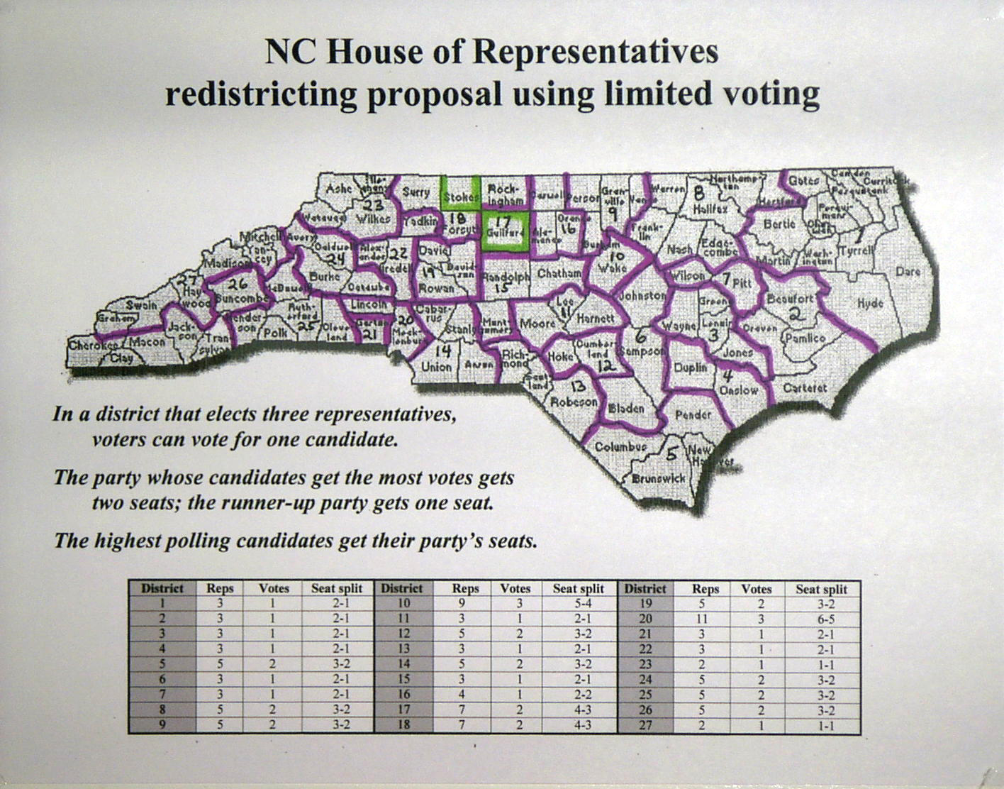 proposal, North Carolina would be divided into mostly 3- and